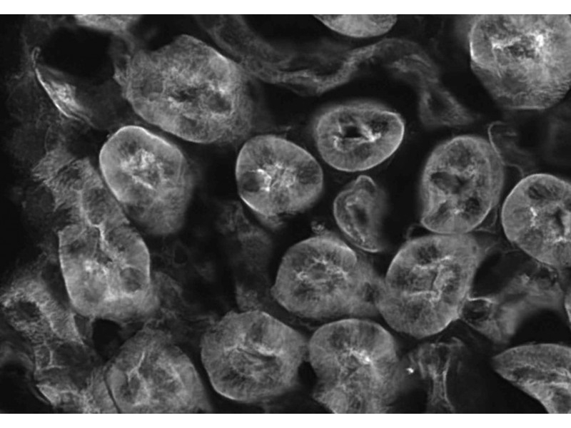El modo monocromático de la Digital Sight 10 admite la captura de imágenes de fluorescencia en el infrarrojo cercano (700 nm), normalmente difícil de lograr con las cámaras a color convencionales. Dado que la sensibilidad de la fluorescencia se extiende a la región NIR, esta cámara es adecuada para la captura de imágenes de fluorescencia de muestras gruesas y muestras con fototoxicidad débil.