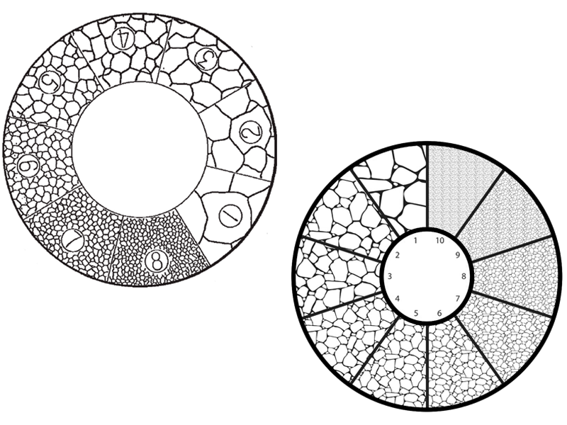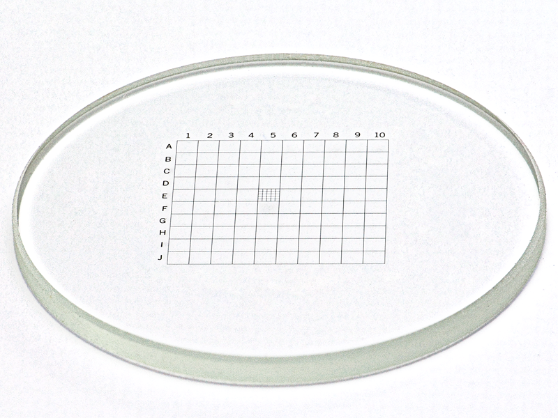 Un cuadrado grande de 10 x 10mm, en cuadrados de 1mm y uno al centro de 5x5 cada cuadrado uno de 0,2mm, tenemos disponible diferentes medidas de diámetro que se adaptan a cualquier marca y modelo de ocular.