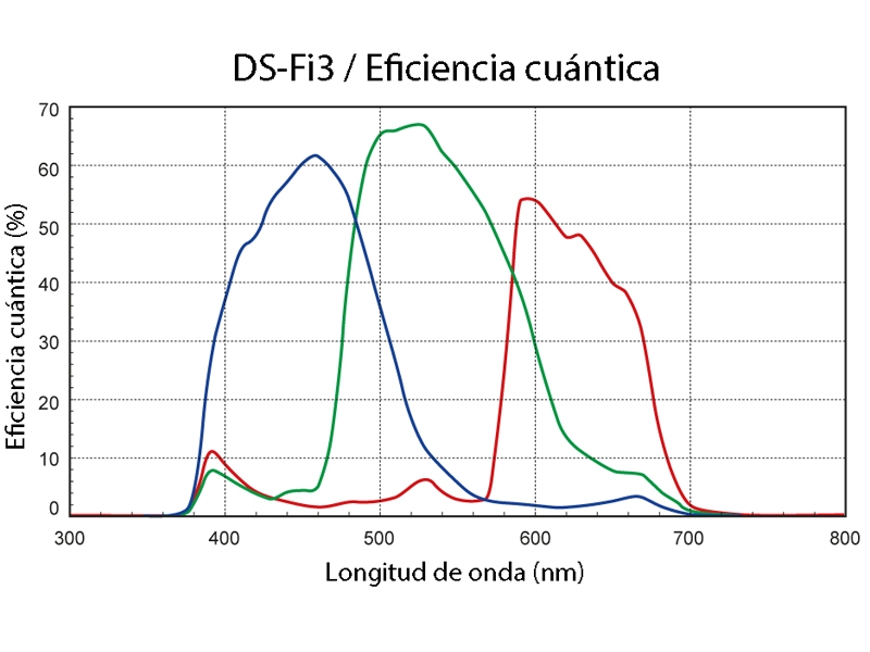 La DS-Fi3 tiene una eficiencia cuántica significativamente mayor y un ruido de lectura menor que los modelos convencionales. Permite la captura de imágenes más brillantes con mayores relaciones S / N en los modos de observación de fluorescencia.