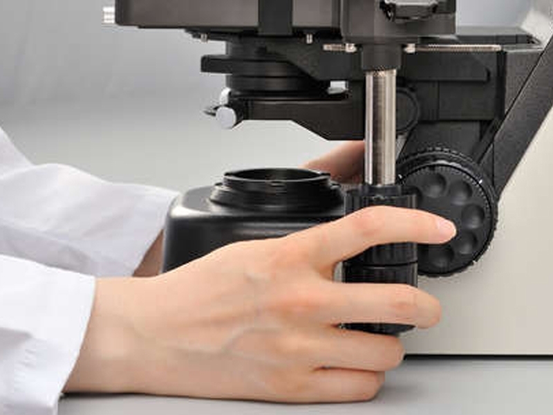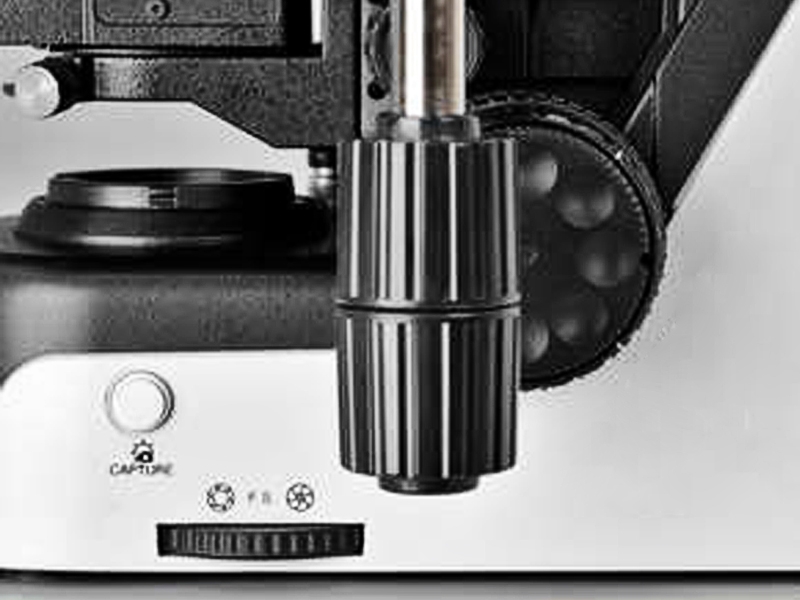 Los mandos de enfoque fino / grueso para mover la platina hacia arriba y hacia abajo están colocados en ambos lados del microscopio. Además, el tornillo de enfoque micrometrico coaxial es imantado y se puede intercambiar, cuenta con una precision de enfoque de 1u,