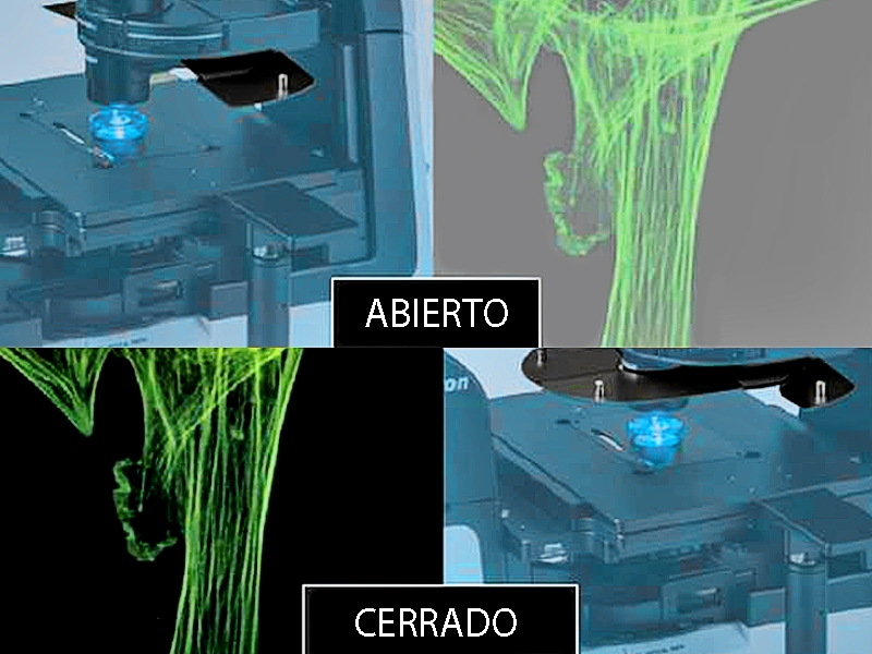 Permite usar iluminación diascopia o epi-fluoresencia ya que tiene incorporado una torreta de fluoresencia que porta hasta 4 cubos