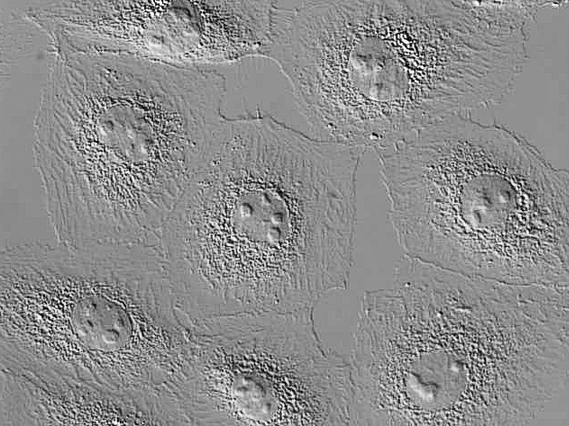 La nueva técnica de contraste de Nikon es compatible con platos de cultivo de plástico y vidrio. A diferencia del contraste de fase o NAMC, Emboss Contrast no requiere objetivos especiales y, por lo tanto, tiene un efecto mínimo en la observación de Epi-fluorescencia. El relieve de contraste permite que las muestras gruesas, como los embriones, se observen fácilmente en una imagen pseudo tridimensional con gran claridad.