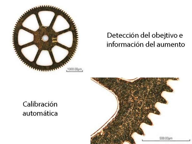La imagen en el software NIS- Elemnt nos indicara el aumento en el que estamos y cuando realizemos medidas o la escala, al cambiar de aumento, automaticamente la medida tambien cambiara, esto nos ayuda a aumentar nuestra prodcutivad en la documentación sin la necesidad de preocuparse porque una medida este mal hecha.