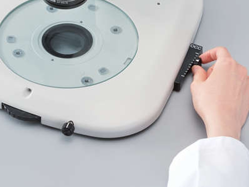 Esta exclusiva base OCC cuenta en la parte frontal con un dial de enfoque, único en Nikon, esto permite conservar nuestra postura, manipular la muestra y enfocar sin tener que levantar los brazos. Además ofrece ranuras para poder instalar brazos de fibra liquida LED