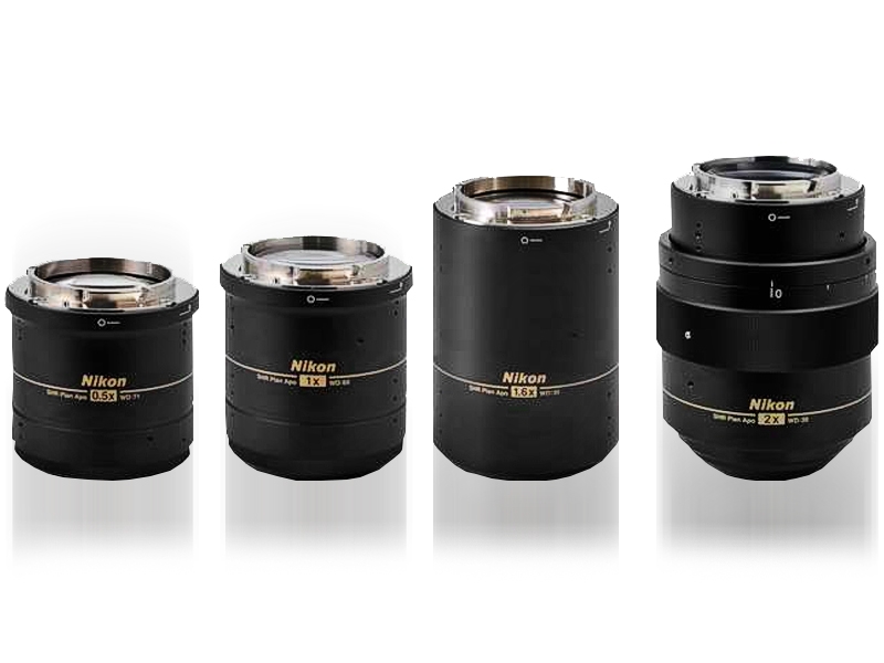 Estos objetivos recientemente desarollados exclusivamente para este modelo de la serie SHR Plan Apo, es la combinación perfecta de gran apertura numerica, alta resolución y larga distancia de trabajo, brindando imágenes brillantes con colores realistas, con una planitud de imagen y correción de aberracion cromatica.